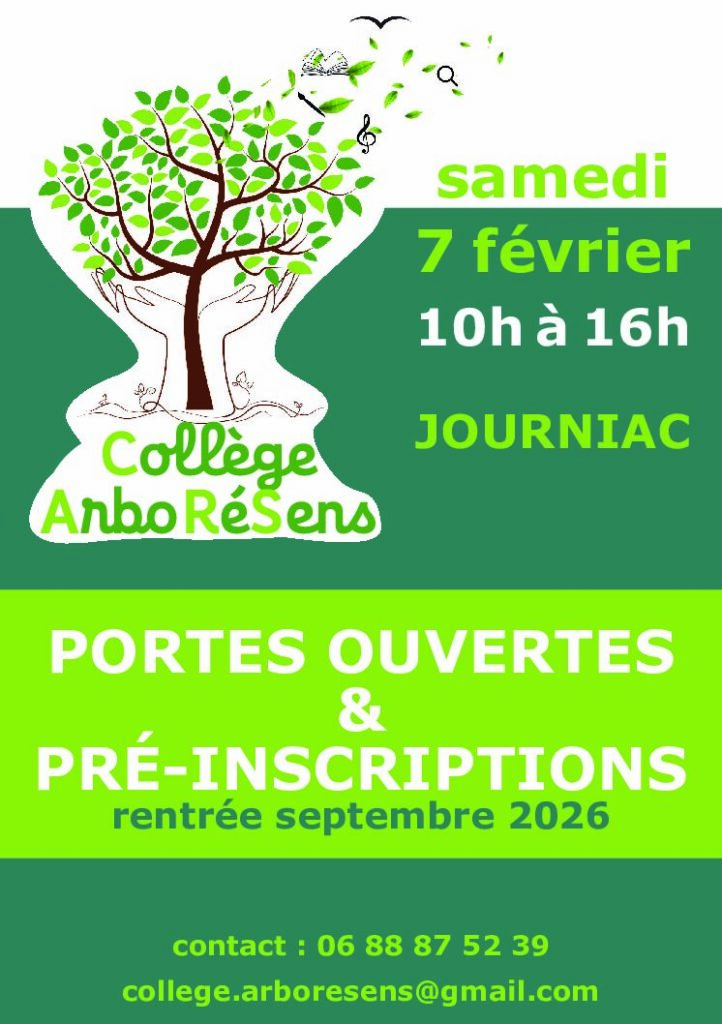 Inscriptions le lundi 7 juillet à 17h au Collège ArboRéSens de Journiac